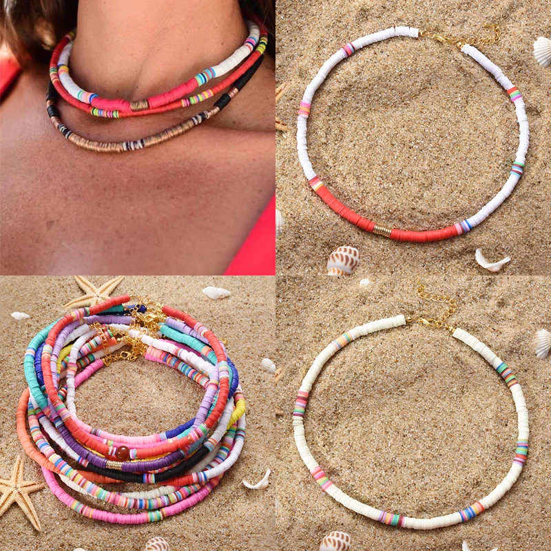 Collares y colgantesEn venta Collar de cuentas coloridas para mujer, gargantilla de moda para chica, joyería de Surf para playa de verano p3KkzLOrq