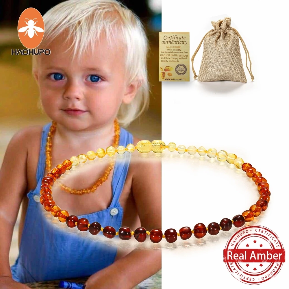 Estoy muy satisfecho con la calidad fuerte este HAOHUPO-collar de ámbar Natural clásico para bebé, certificado de autenticidad, piedra de ámbar del Caribe auténtica, collar para niño, regalo para bebé, 14 colores.