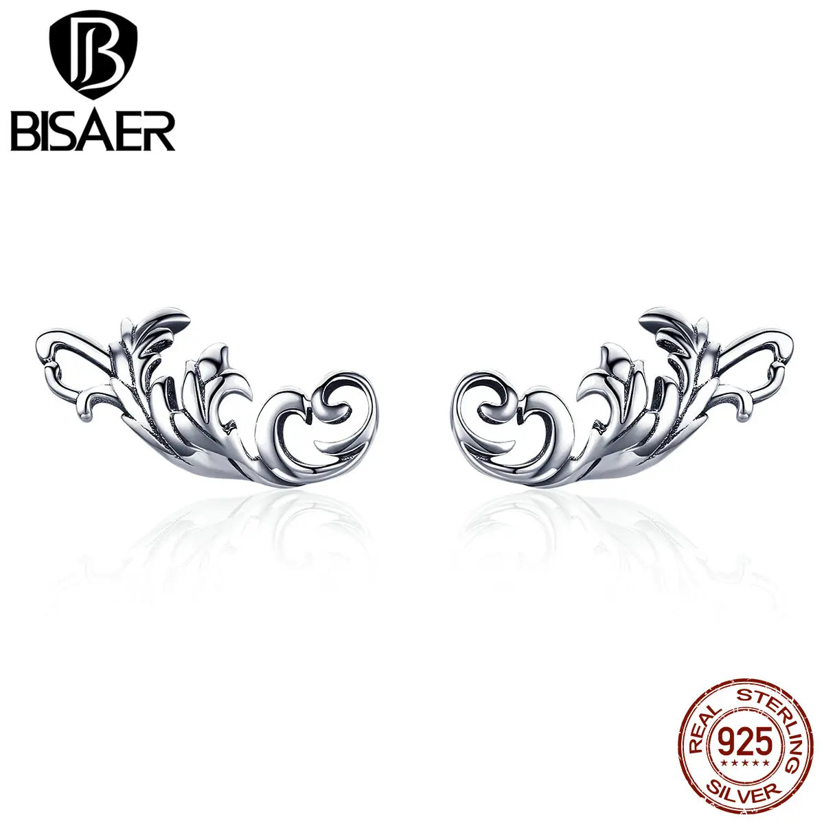Name: BISAER auténtica Plata de Ley 925 Europea retorcido geométrica Stud pendientes de varilla para mujer coreano joyería pendientes de ECE580