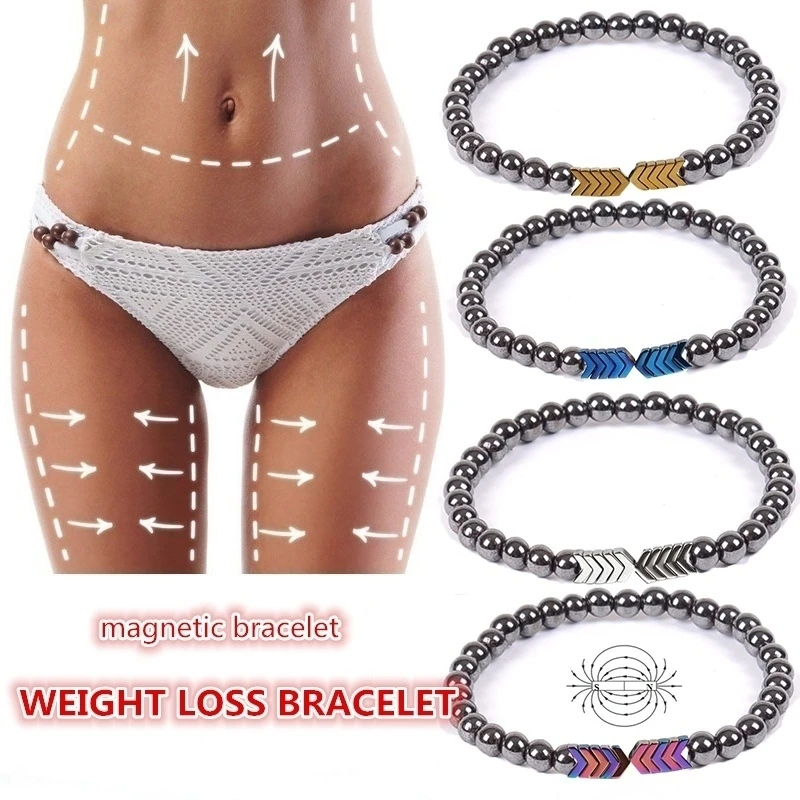 Reducido Pulsera de adelgazamiento magnético, brazalete de cuentas de terapia con piedras de hematita imán de cuidado de la salud 9YaLQVJJklk